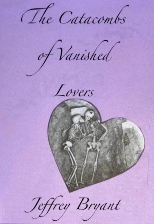MDS: Thanks so much for talking with me, Jeffrey, and congrats on your debut full-length collection, The Catacombs of Vanished Lovers, but first, full disclosure to readers out there: I got to publish several pages of your poems when I served as Guest Editor for the March 2025 issue of Cholla Needles Literary Journal, so I've had an early peek. The book is available for pre-sale right now, and you'll be doing a reading for the hard launch in L.A. on July 6th, all coming about thanks to Natasha Dennerstein’s new LGBTQ poetry imprint, Cherry Pie Press. Talk a little if you would about that collaborative journey so far—how you met, how the book came together, how the collab and the mission is blossoming.